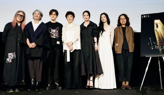 ·2024年11月2日,《小小的我》劇組亮相東京國際電影節,從左至右依次為尹露、楊荔鈉、易烊千璽、林曉杰、蔣勤勤、周雨彤和游曉穎。