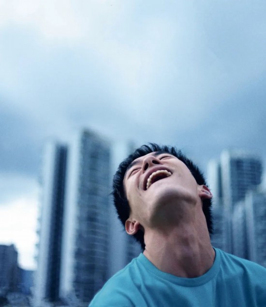 電影的開場畫面,是一雙正在上樓梯的瘦骨嶙峋的腿。主人公仿佛在用盡全身力氣拖動扭曲的腿腳,一步一步向上邁進。走上老舊的天臺,四周是鱗次櫛比的高樓,一陣陣風吹動他干枯的頭發,吹過他洗舊了的T恤。一個遠景拉開,小小的背影淹沒在大大的城市中。